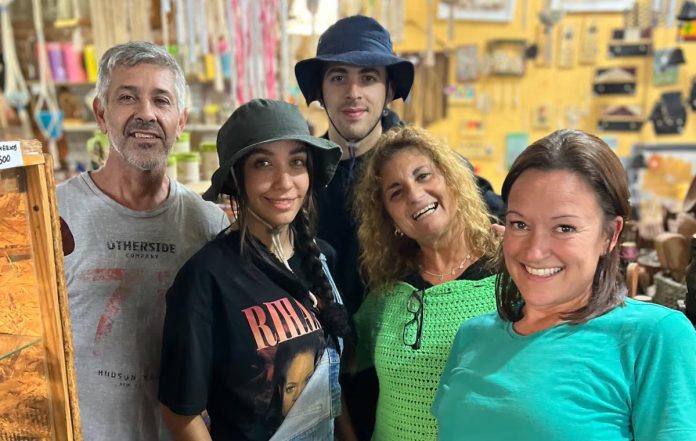 La Nena de Argentina y su pareja, J Rei, visitaron un local de artículos regionales el domingo por la noche en Los Aromos, luego de haber pasado unas mini vacaciones en el Valle de Calamuchita.