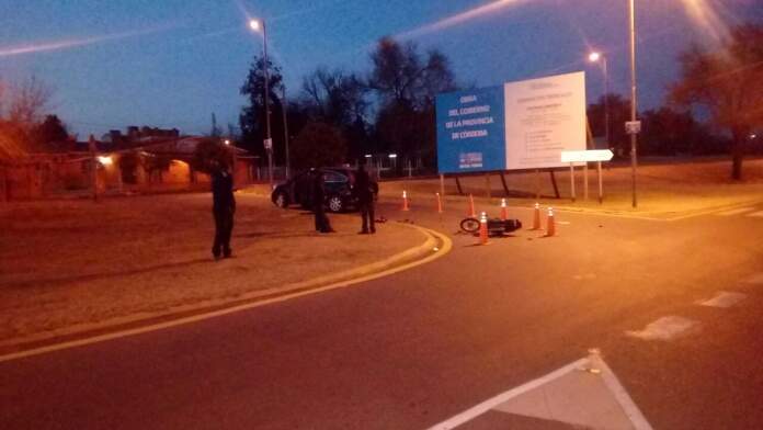 A las siete de hoy, colisionaron un Honda CR-V y una motocicleta Honda Wave en la Rotonda 9 de Julio de Ruta 5, a la altura de Villa La Bolsa.
