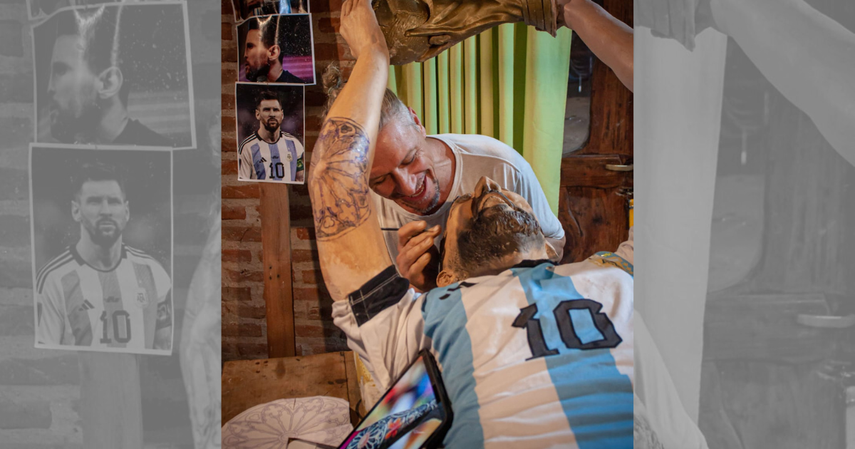 «La idea nació allá, en el Mundial. Me acuerdo que a la tarde nomás, después de festejar en el centro, me volví y me brotó la necesidad y las ganas de hacerle el homenaje a Leo Messi. No por levantar la Copa, tampoco por por lo futbolístico. Me encantó verlo compartir con su familia sentado en la cancha. Ese momento de darle la Copa a sus hijos, no dar la vuelta olímpica sino más bien darle la prioridad a lo esencial de la vida. Eso fue lo que me llegó», recuerda Julio Incardona, en diálogo con Redacción Alta Gracia.