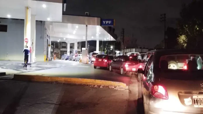 En horas de la noche de este martes se podían ver largas filas de vehículos haciendo cola para poder cargar combustible antes de que vuelva a aumentar