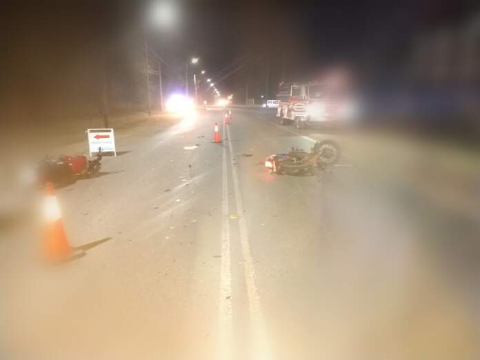 La Policía informó que, por causas a establecer, colisionaron dos motocicletas. Uno de los vehículos, marca Honda Titan 150cc, era conducido por un hombre mayor de edad; mientras que, la otra motocicleta de la misma marca era conducida por un hombre de 33 años y acompañado por una mujer de 30 años.