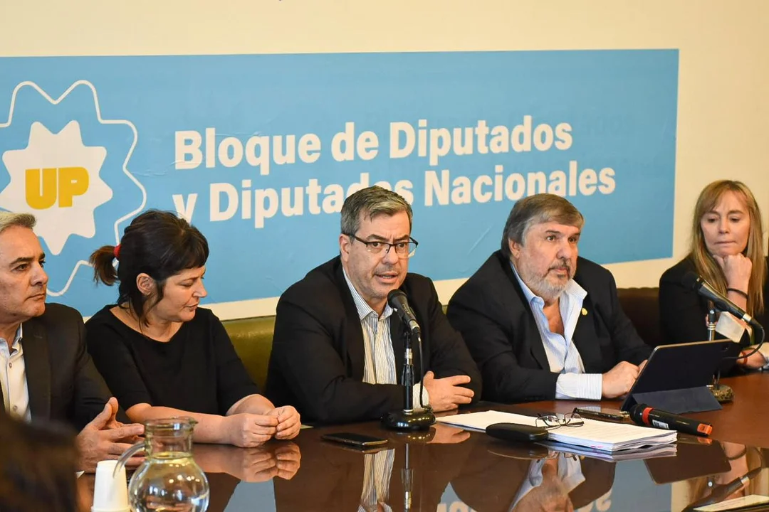 “Lo que quiere el Gobierno es liberarse de esos condicionamientos de la ley de Administración Financiera en perjuicio de los intereses del Estado argentino y del pueblo argentino”, siguió en la conferencia de prensa que se desarrolló en el despacho principal del bloque de diputados UP.