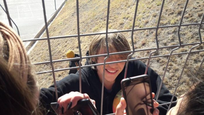 Cadena 3- Parte de la playa de estacionamiento fue transformada en una cancha de básquet. Santino, un niño de 10 años, participó de la filmación. «Fue muy simpático» dijo a Cadena 3.
