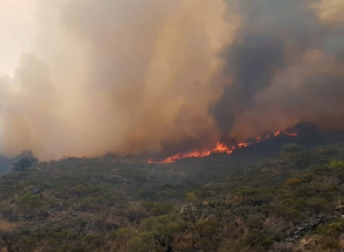 Los incendios forestales en las sierras de Córdoba alcanzaron este miércoles a un sector del multiparque Peko’s, en Santa Cruz del Lago, en Villa Carlos Paz.