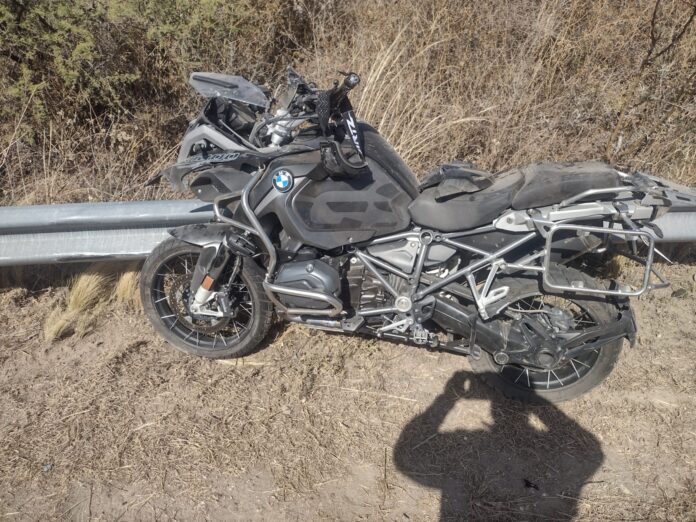 Este miércoles un motociclista de 56 años que se trasladaba en una moto BMW 1200 perdió el control de su vehículo y terminó despistando sobre la carpeta asfáltica, quedando la moto a varios metros de él.