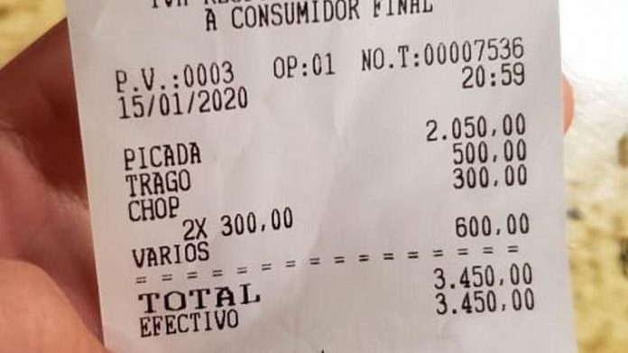 Cadena 3- Un grupo de amigos generó controversia al publicar el ticket de una picada con bebidas en la ciudad serrana. Desde las instituciones del rubro sugieren siempre pedir la carta con los precios.