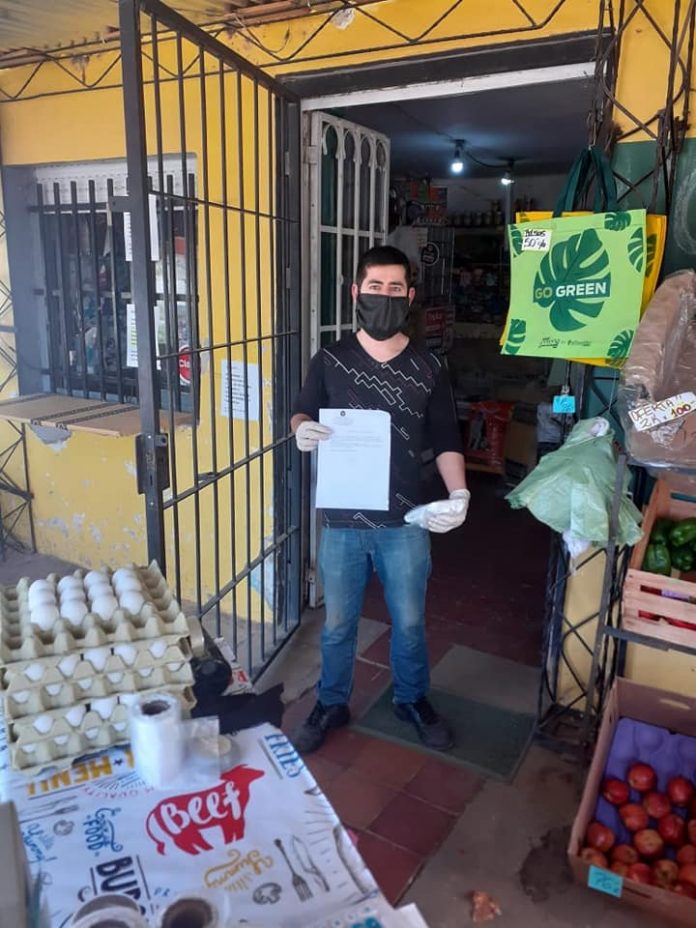 Además se entregó una notificación donde se les recuerda que deben atender al público con barbijo. Los comerciantes están autorizados a no atender a aquellos vecinos que ingresen a comprar sin respetar esta medida de prevención. Las autoridades instan a respetar la distancia social de dos metros para evitar los contagios de covid19.