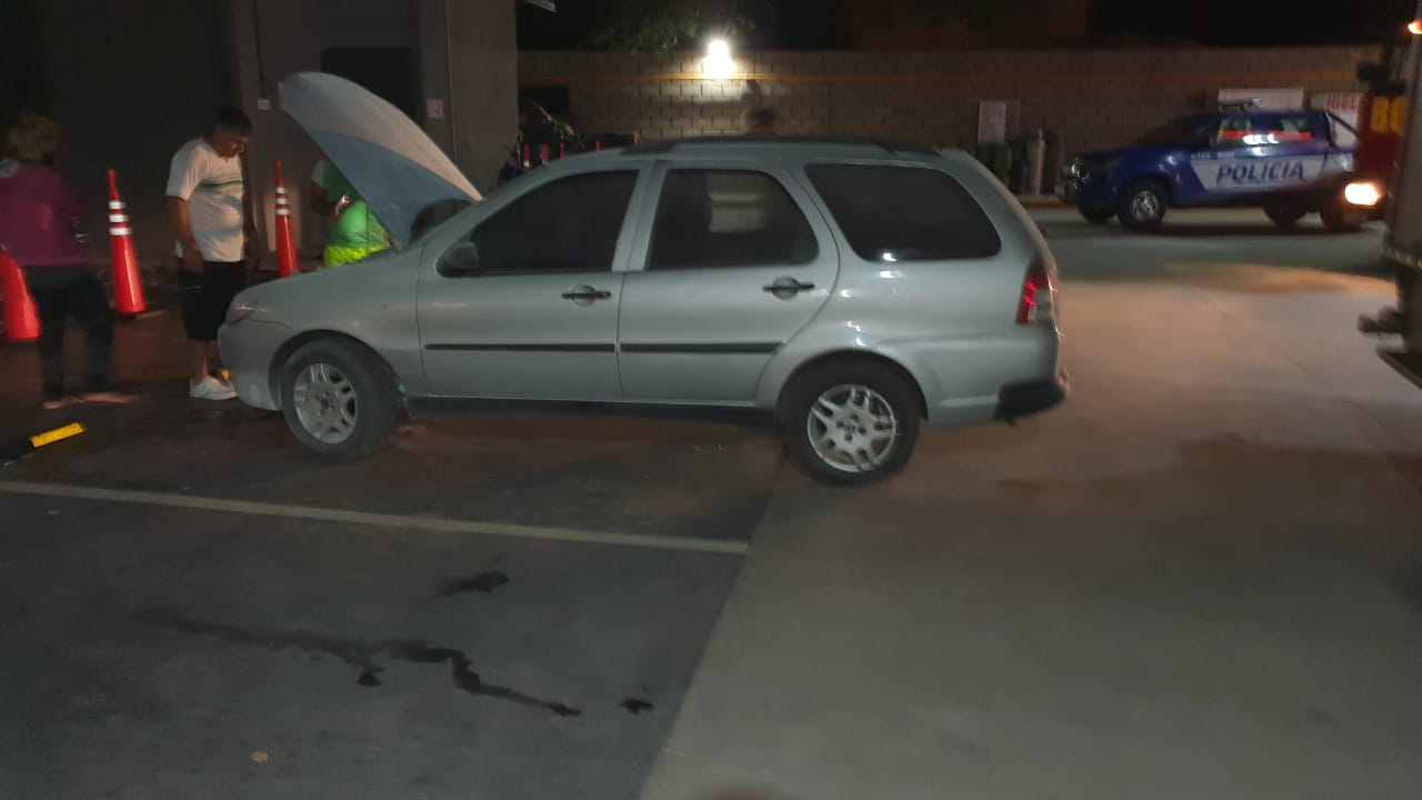 Personal policial y de bomberos voluntarios, se constituyeron en Ruta 5 y km 52 y 1/2, donde por causas a determinar, un vehículo Fiat Palio Weekend de color Gris, tomó fuego en el sector del motor.