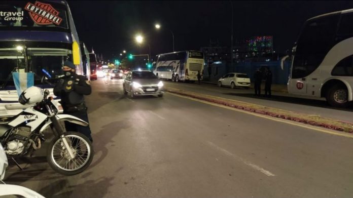 La protesta, que es llevada a cabo por transportistas privados, agencieros de viajes y conductores, comenzó este lunes a la mañana y continúa en horas de la noche.