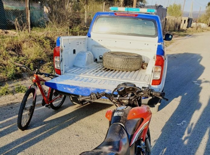 La intervención se originó tras la denuncia de un robo ocurrido momentos antes en calle Zabala Ortiz, lo que motivó un operativo en la zona. Como resultado, en un terreno con una construcción precaria se recuperaron los bienes sustraídos: una motocicleta Honda XR 150 sin dominio, una bicicleta marca Venzo y un casco.