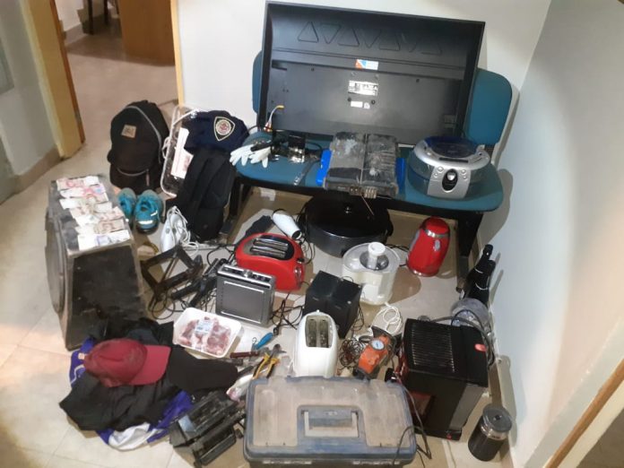 Asimismo se encontraron en el interior del automóvil y dentro del baúl, los siguientes elementos: un TV TCL negro 42″; un radiograbador RECORDER gris; una tostadora LILIANA roja; una tostadora PALSTAR blanca; un stereo EDIFIEL gris; un secador de pelo REMINGTON blanco, una plancha de pelo GAMA negra; una plancha de ropa DAWATSON negra; una caja con herramientas vs; una cafetera expres FOSTER negra; una procesadora sin marca blanca; un minicompresor DEWAL anaranjado; una potencia PIONER negra 600 Watts; una potencia cajon PIONER negra; una miniprimer BLACK AND DECKER blanca; dos parlantes EDIFIEL negros; una plancha PLASTAR gris; una Mochila EVERLAST negra; una olla eléctrica sin marca gris y ropas y zapatillas varias.