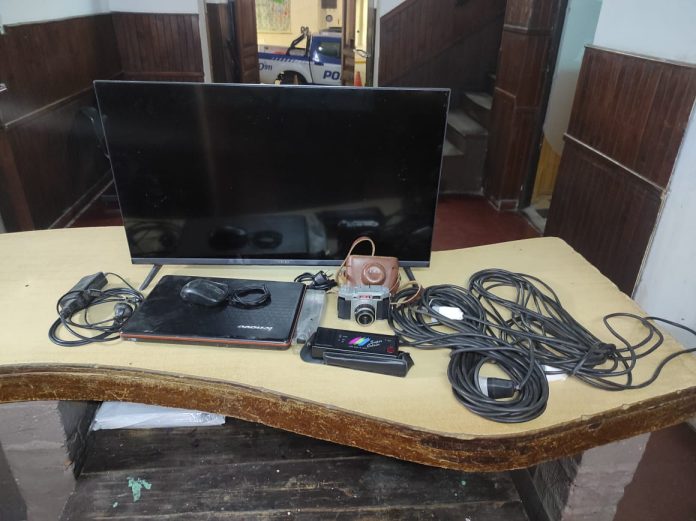 Se logró la detención de un hombre de 33 años y el otro se dió a la fuga, además la recuperación de un tv 32″, 1 notebook LENOVO, mouse , dos cámaras de fotos , dos prolongadores. Se observó además el daño en una puerta que da al patio de la vivienda.