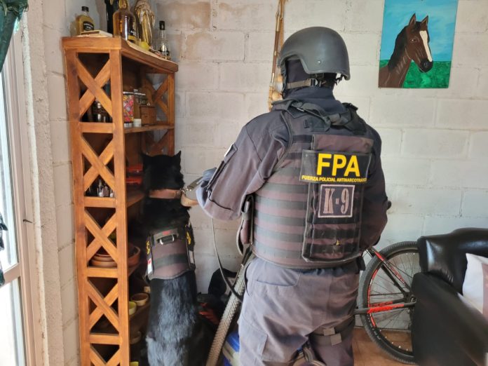Efectivos de la Fuerza Policial Antinarcotráfico efectuaron dos allanamientos en la localidad de Villa San Isidro, allí se detuvo a un sujeto y a una mujer mayores de edad por presunta venta de estupefacientes.