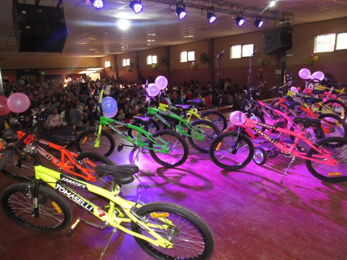 Se sortearon 80 pelotas de basket, volley y fútbol «incentivando al deporte», expresó el intendente; además de 15 bicicletas, cinco triciclos, tres kartings, y juguetes.