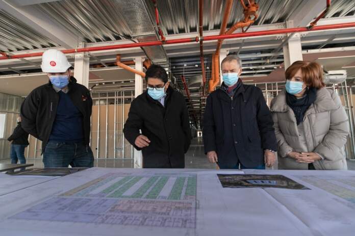 En estos días, 190 operarios trabajan en colocación de tabiquería y cielorraso de durlock, instalaciones sanitarias, gases medicinales, sistema contra incendios y eléctricas, entre otros. Además, se están comenzando a colocar pisos, cerámicos y pintura en el interior.