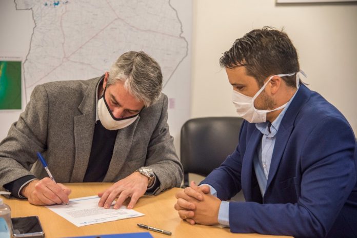 Comunicado de Prensa- El Intendente Marcos Torres recibió del Secretario de Recursos Hídricos de la Provincia, Edgar Castelló, la aprobación del proyecto para la realización de las obras necesarias para mejorar el sistema de abastecimiento y distribución de agua potable.