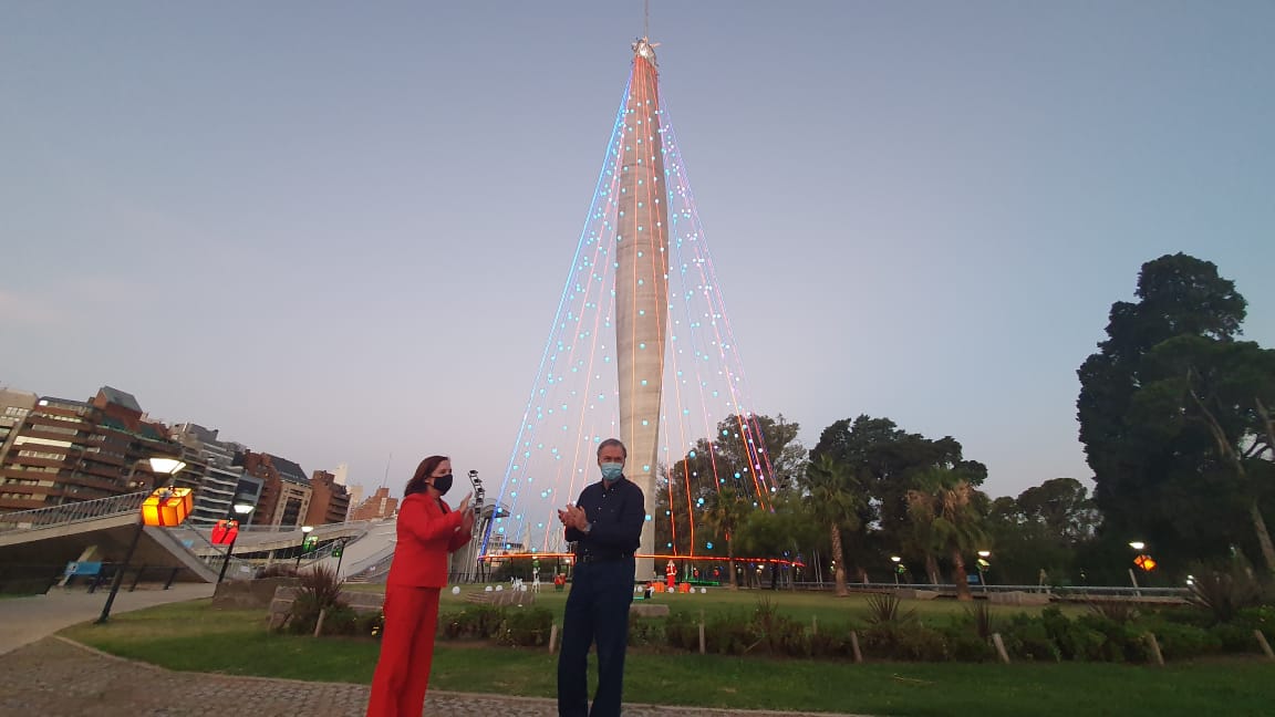 Esta tarde, el gobernador de la Provincia Juan Schiaretti y la diputada nacional Alejandra Vigo, participaron del encendido del árbol de Navidad en el Faro del Bicentenario, ubicado en inmediaciones de la calle Deodoro Roca esquina Carlos Thays, en el Parque Sarmiento.