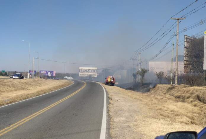Informó personal de Malagueño, que se produjo un incendio en colectora sur de Ruta C-45, con un frente de cien metros.