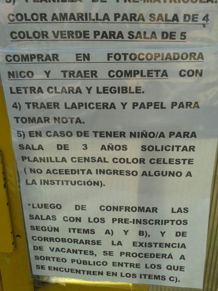 Aquellos padres interesados, que tengan niños que cumplan tres hasta el 30 de junio de 2018 inclusive, pueden acercarse a las entidades educativas donde deseen anotar a sus pequeños y solicitar la notita censal-la cual no acreedita ingreso alguno-.