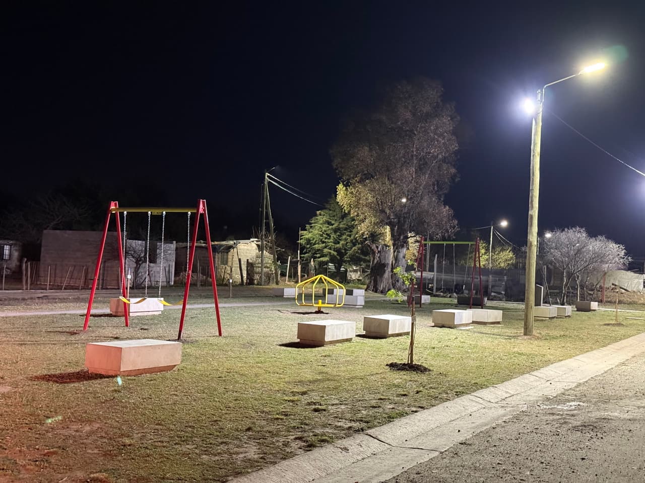 En la plaza del barrio se renovó la iluminación y el equipamiento del predio, generando un espacio de encuentro para todas las edades. Se colocaron reflectores, canteros, árboles y nuevos juegos infantiles, entre ellos dos hamacas y un trompo.