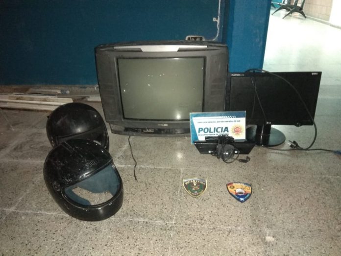 Los agentes llevaron a cabo un rastrillaje por el sector logrando la aprehensión de dos hombres de 28 y 29 años, quienes se conducían en una motocicleta Yamaha 125 cc. Uno de ellos, en el camino, se descartó de un bulto de gran tamaño, el cual en su interior tenía un televisor marca Philco de 21″, un monitor LG modelo Foltron de color negro y una XBOX 360, no pudiendo justificar la tenencia de los mismos.