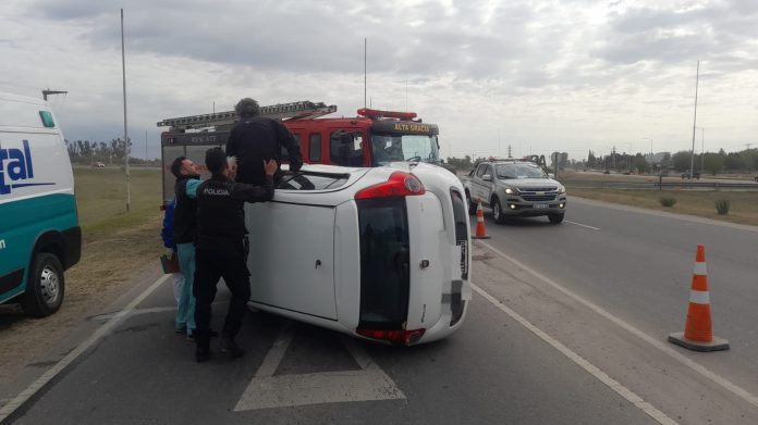 El accidente se registró este viernes en la Ruta 5 en inmediaciones de la Rodonda AG cuando un hombre de 60 perdió el control de su vehículo el que teminó volcando sobre la carpeta asfáltica.