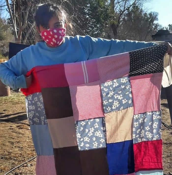 «La campaña hilando se llevó adelante gracias a la solidaridad de las y los vecinos que aportaron la materia prima y al trabajo en conjunto de más de 100 personas, que lavaron, cortaron y cosieron las telas para transformarlas en frazadas” comento Ludmila Giménez Ochoa, referente de Barrios de Pie.