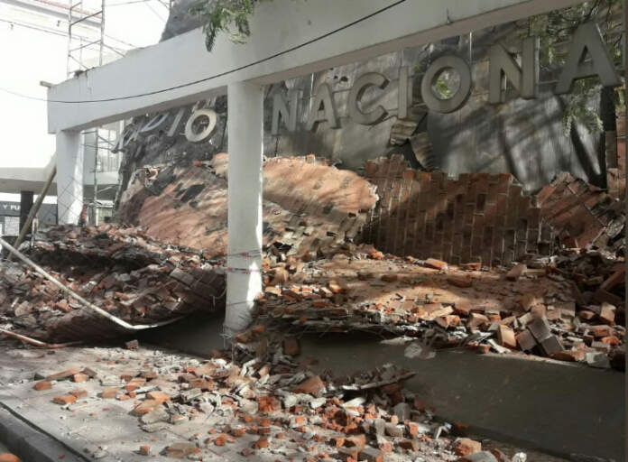 El hecho se registró quince minutos antes de las 17 horas cuando se desplomó la cúpula del techo del Auditorio pero, afortunadamente, no se registraron daños físicos de ningún transeúnte ni personal de la obra.