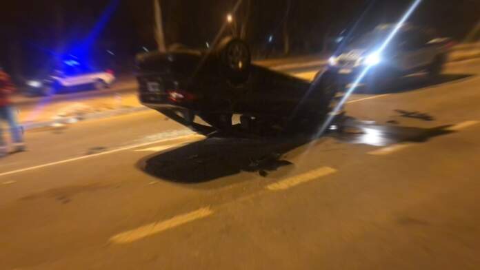 Al llegar al lugar, observaron un auto Ford Fiesta Kinetic que se encontraba sobre la carpeta asfáltica con sus cuatro ruedas hacia arriba.