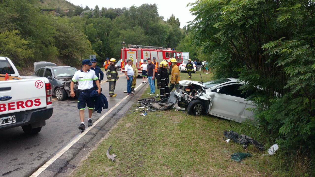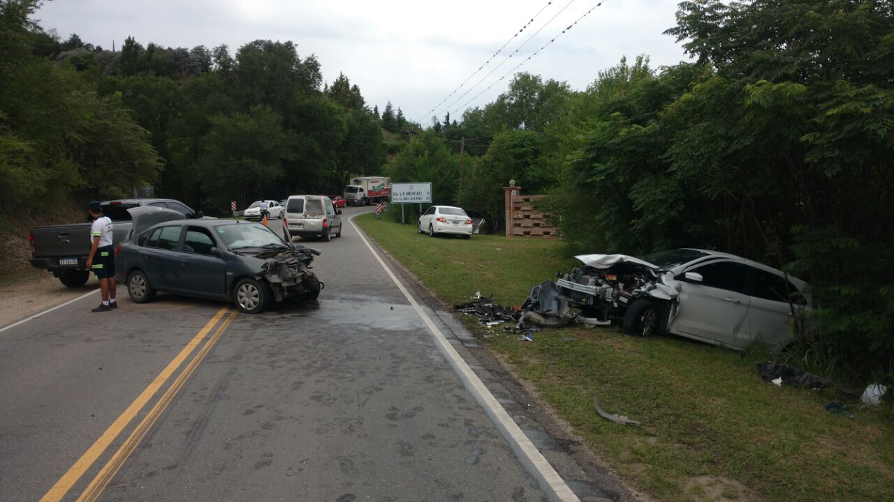 Un Ford K blanco, un Renault Simbol gris y un Toyota Corolla blanco, colisionaron en el kilómetro 54 de Ruta 5, a las 15 de hoy. En el primero viajaban una mujer de 57 junto a su hijo de 19 años, el segundo era manejado por una ciudadana de 32 y el tercero era conducido por un hombre de 41 años.