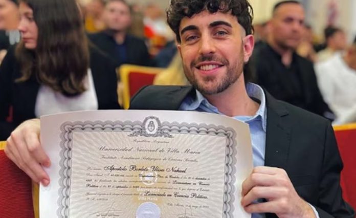 Apóstolo, de 26 años, y oriundo de Despeñaderos, estudió Ciencias Políticas en la Universidad Nacional de Córdoba (UNC) y en realidad era asesor del legislador peronista Juan José Blangino.