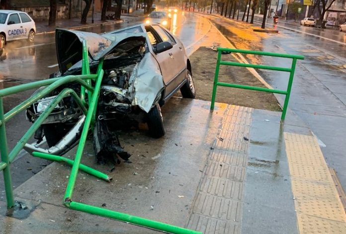 El vehículo, por causas que se tratan de establecer, perdió el control e impactó con violencia contra la dársena del Sólo Bus a la altura de barrio Empalme.