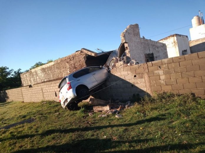 Allí el vehículo se elevó, pasó entre dos columnas de cemento y se incrustó en la vivienda.