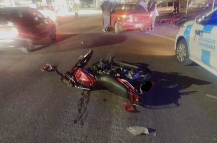 El hecho se produjo en la rotonda de El Crucero. El automovilista resultó ileso, mientras que el motociclista resultó con politraumatismos, siendo asistido por una ambulancia de Vittal, que lo trasladó al Hospital Illia.