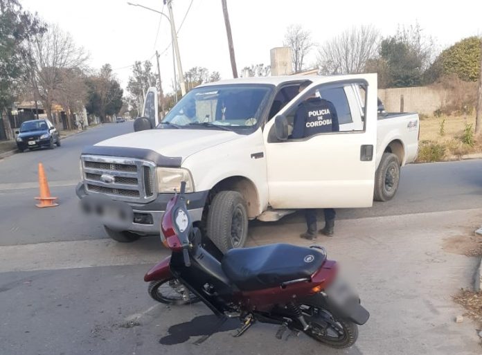 Redacción Alta Gracia- La colisión se produjo en la tarde del domingo, entre una Ford F-100 y una motocicleta 110 cc.