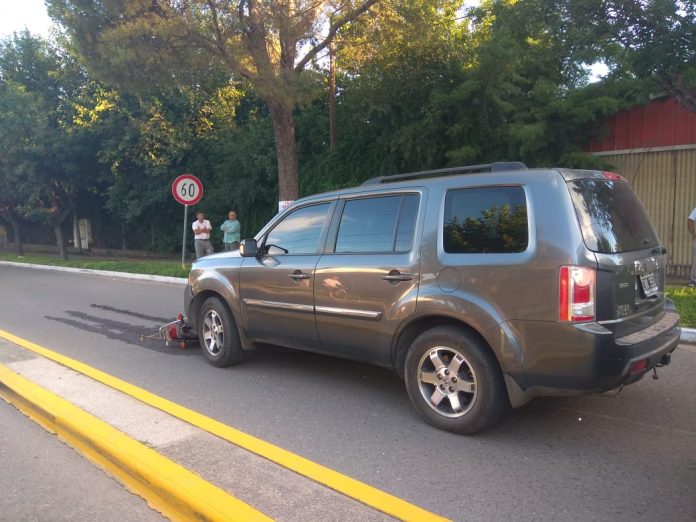 El mismo conducía una motocicleta HONDA WAVE color negra y colisiona con un vehículo HONDA PILOT color gris.