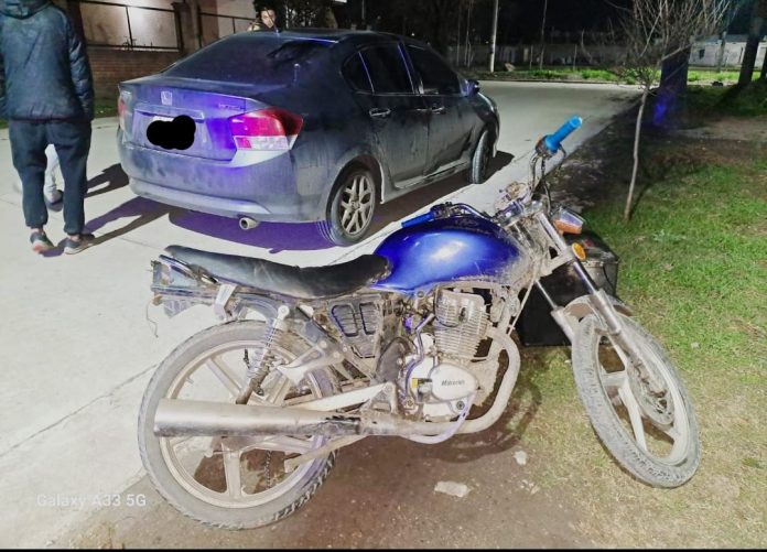 Personal policial informó que al llegar al lugar observó la colisión entre una motocicleta Maverik conducida por un hombre de 23 años y un vehiculo Honda City conducido por una mujer de 39 años quien iba acompañada acompañada de sus dos hijos de 20 y 16 años.