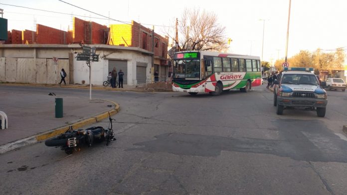 Por razones que se investigan, en la tarde de este domingo, una unidad de la empresa Garay al mando de Hernán Pereyra (36), colisionó contra una motocicleta Fz 150 de color negra conducida por Kevin Cejas (32) en la esquina de Avenida Libertador e intendente Llorens.
