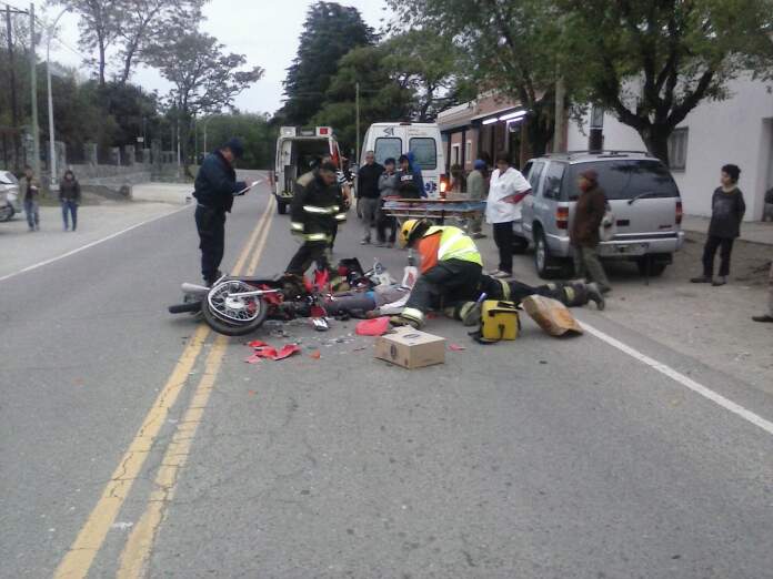 Al llegar la policía al lugar, encontró una moto Mondial Max 110 cc tirada sobre la carpeta asfáltica y a su lado el conductor. El hombre resultó con fracturas de ambas muñecas y expuesta de fémur derecho, fue asistido por bomberos voluntarios y luego fue trasladado al Hospital Illia por el servicio de emergencias médicas. A unos cinco metros, sobre la banquina, se hallaba la camioneta gris con sus dos ocupantes, un hombre de 66 y su esposa de 61 de Valle Alegre, quienes no sufrieron lesiones.