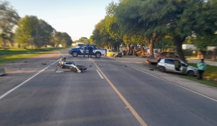 Personal policial informó que al llegar al lugar del accidente, constató que se había producido un choque entre un auto y una moto.