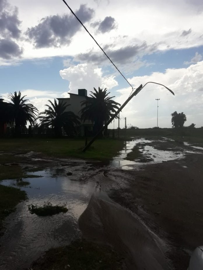El fenómeno afectó a la zona rural próxima a la conocida Playa Grande, donde produjo caída de árboles, postes y voladura de techos de galpones. No se registraron víctimas ni heridos.