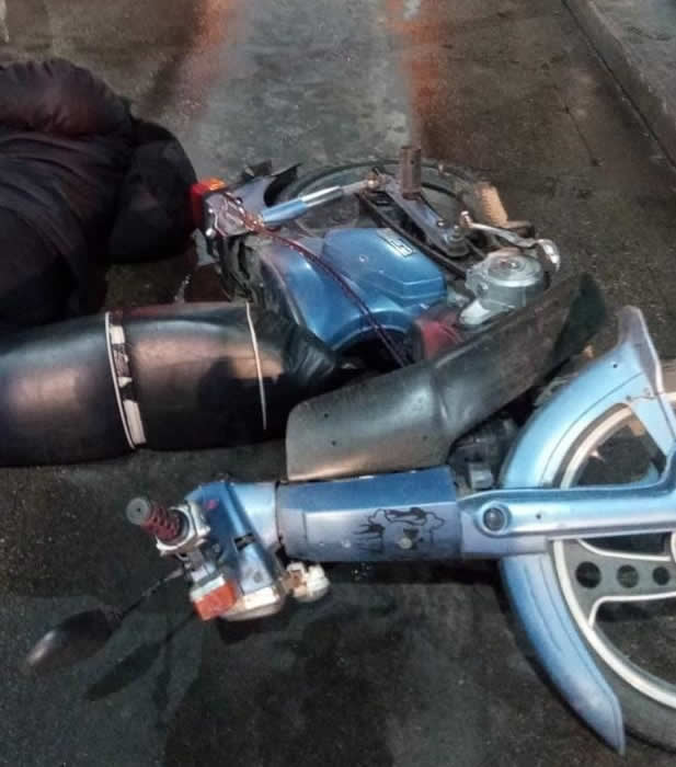 Personal policial informó que al llegar a la Ruta 5, km 11 observó una moto Honda 90 cc tirada sobre la carpeta asfáltica junto a un hombre de 42 años.