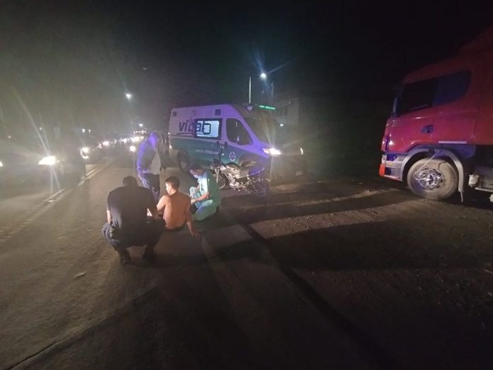 Personal policial informa que al llegar al lugar se entrevistó con un hombre de 20 años quien conducía una motocicleta marca Zanella RX 150e iba acompañado por su pareja de 27 años. El jove al realizar una mala maniobra para adelantar caen a la carpeta asfáltica.