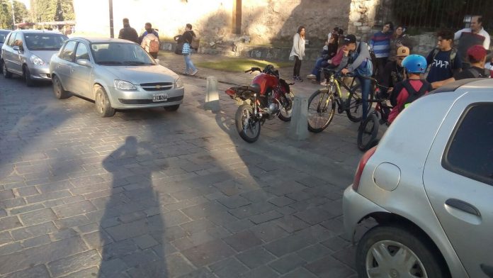 choque en el centro - Una mujer fue embestida por una moto en pleno centro