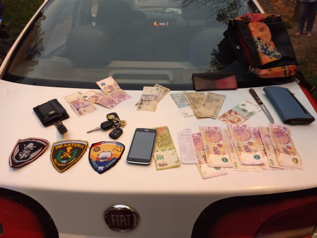 Se secuestró en el lugar una mochila floreada que en su interior contenía: una billetera color negra con dinero y documentación del damnificado, una billetera con dinero, un celular marca LG negro, un cuchillo tramontina. Por lo que se procede al secuestro de los elementos y aprehensión de la mujer de 50 años. +