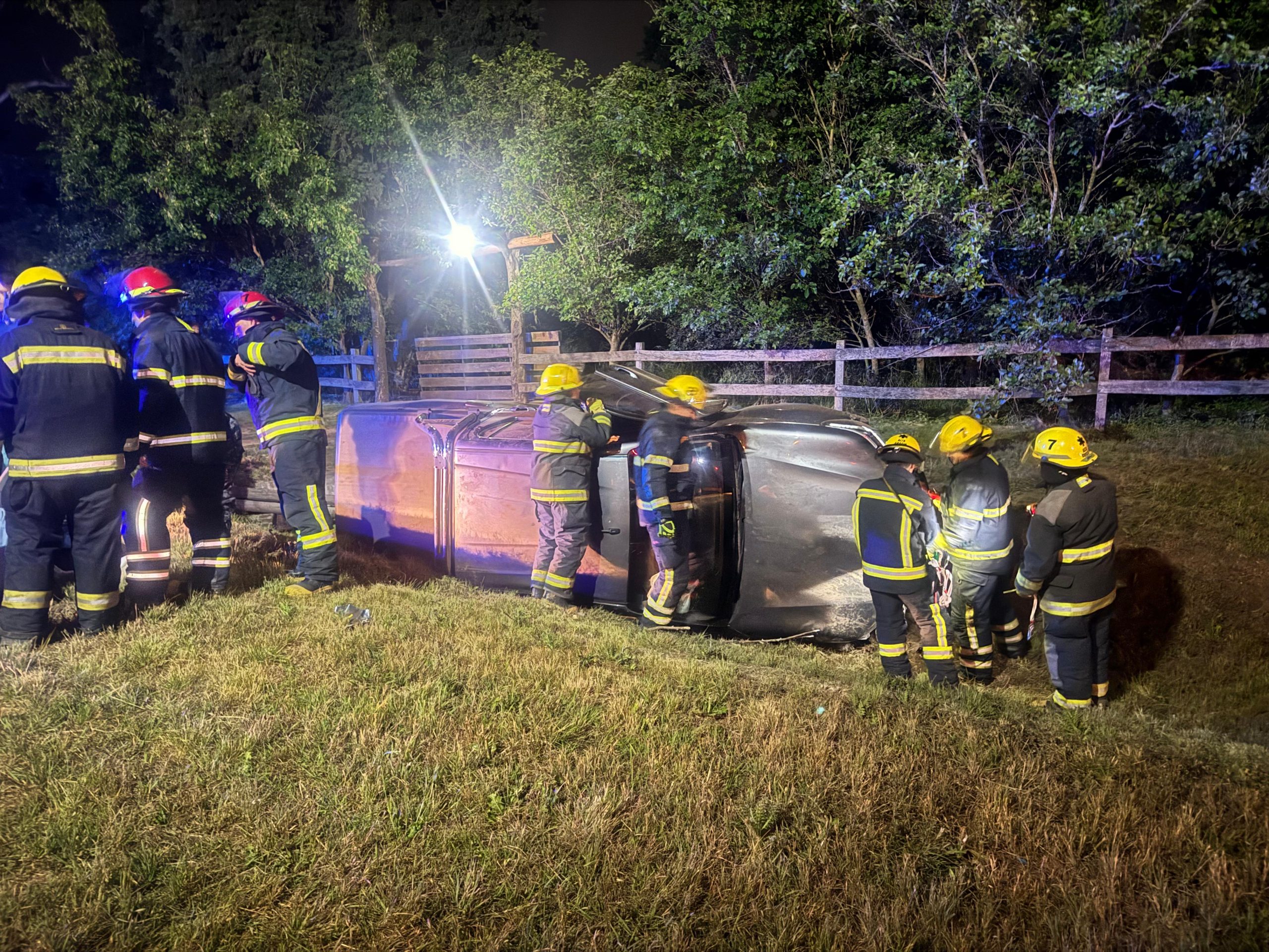 En el lugar, los efectivos constataron la presencia de una camioneta Toyota Hilux SRV recostada sobre su lateral derecho dentro de una acequia. En el vehículo se trasladaban una mujer de 48 años y su esposo, de 49, quien —según manifestó la acompañante— se habría quedado dormido al volante, provocando la pérdida de control del rodado.