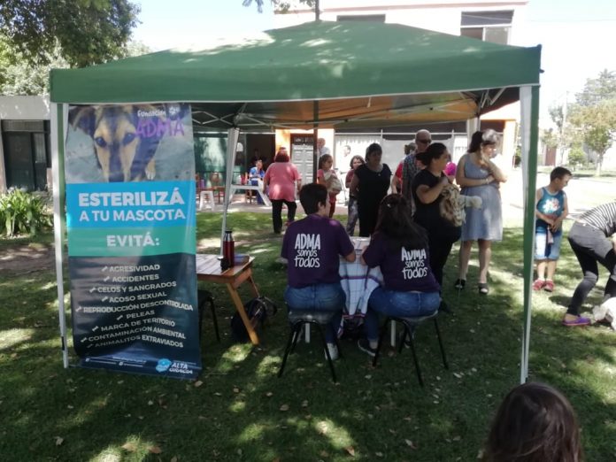 Personal de la Fundación ADMA junto a profesionales del área de Salud Animal del Municipio llevan adelante la campaña de vacunación antirrábica en distintos barrios de la ciudad.