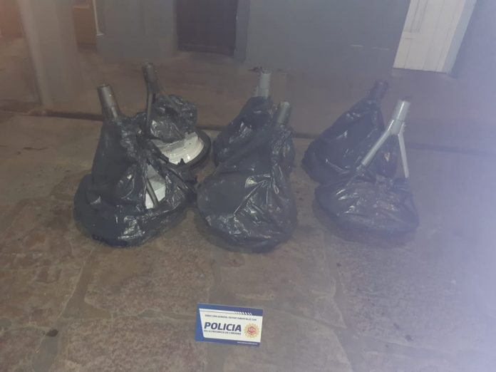 En aquel entonces, personal de la Brigada Civil de Investigaciones, se constituyó en un sector del barrio Córdoba en donde observaron varias bolsas de consorcio de color negra sobre la maleza, pudiendo constatar que dentro del interior de las bolsas se encontraban faroles con sus estructuras de caño y luces LED marca TECTRONISA, elementos que estarían relacionados al hecho que se investiga.