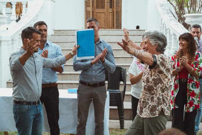 En la tarde del lunes 5 de diciembre el Intendente Marcos Torres, junto al Ministro de Empleo y Formación Profesional Facundo Torres, la Viceintendenta Cristina Roca, el Secretario de Gestión Publica Pablo Soler, el Director de Gestión Administrativa Martin Cortes y Autoridades de la Cooperativa de Viviendas Mi Lugar Nora Alemanno y Martha Mendoza y la Escribana, Consuelo Miranda realizaron la entrega de 50 escrituras definitivas de su vivienda a vecinos de Barrio Portales del Sol.