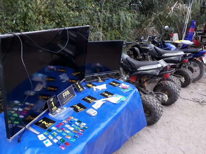 En los lugares, efectivos de la FPA secuestraron 76 dosis de cocaína y 22 de marihuana, además de 7.840 pesos, un vehículo de alta gama (BMW), una moto, dos cuatriciclos y dos pantallas LCD, entre otros elementos presuntamente adquiridos con el dinero producido por la actividad ilegal.